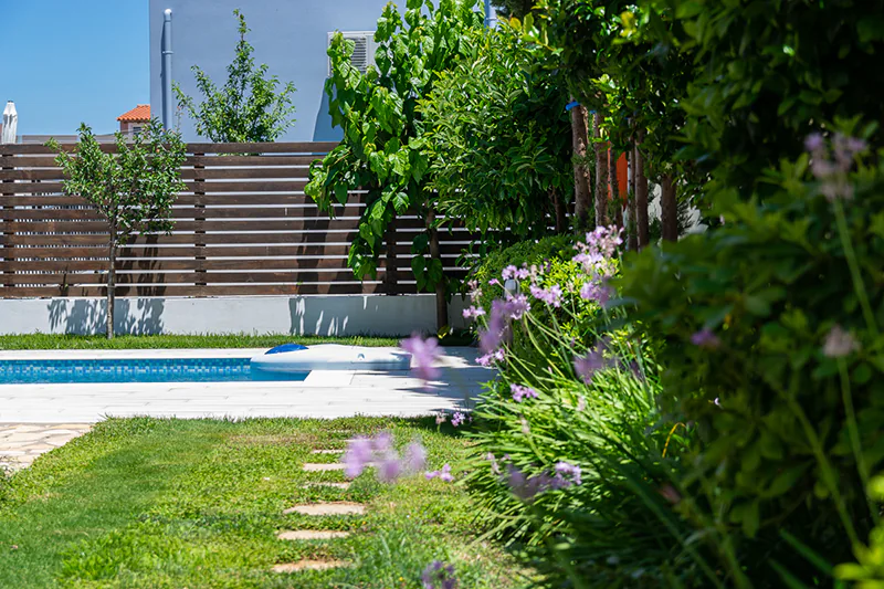 You can either sunbathe on the deck chairs by the private swimming pool, or relax and enjoy the view of the balconies. A barbecue is located at the corner of the garden as well. There is also a private open air parking and plenty of land.