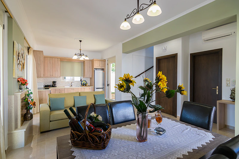 Built in modern architecture yet loyal to the local tradition, ‘Villa Aphrodite’, a 85m2 Maisonette, 4 person villa in Crete, offers the perfect solution to a shared family holiday. Tastefully furnished in a modern style, with a touch of traditional elements.